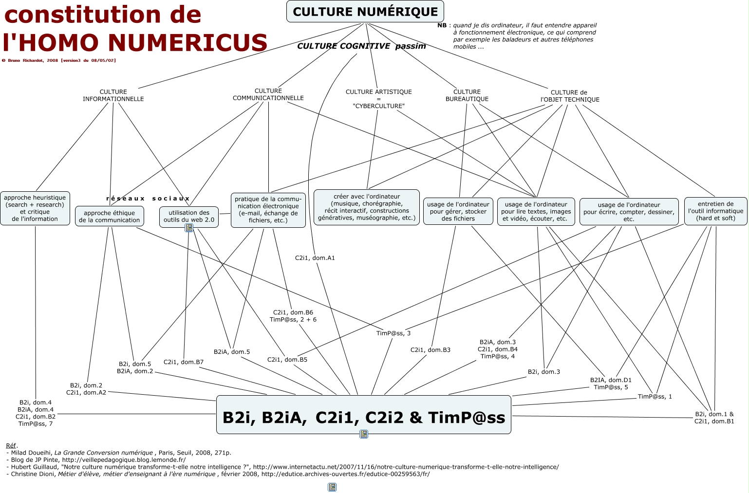 Constitution de l’homo numericus : réflexion sur les différentes branches de la “culture numérique” et les référentiels de l’éducation nationale sous la forme d’une carte heuristique réalisée par Bruno Richardot avec IHMC CmapTools